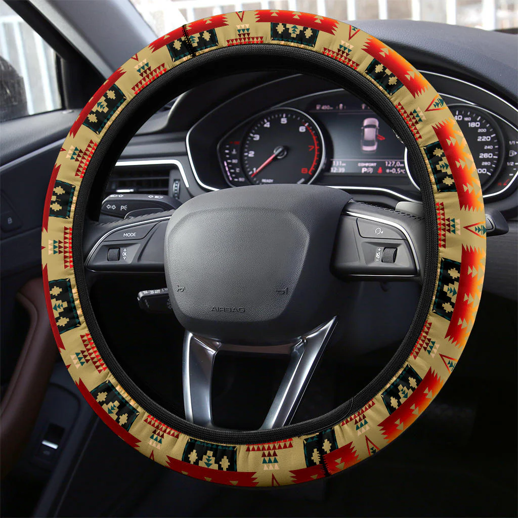 GB-NAT00046-15 Light Brown Tribe Pattern Steering Wheel Cover